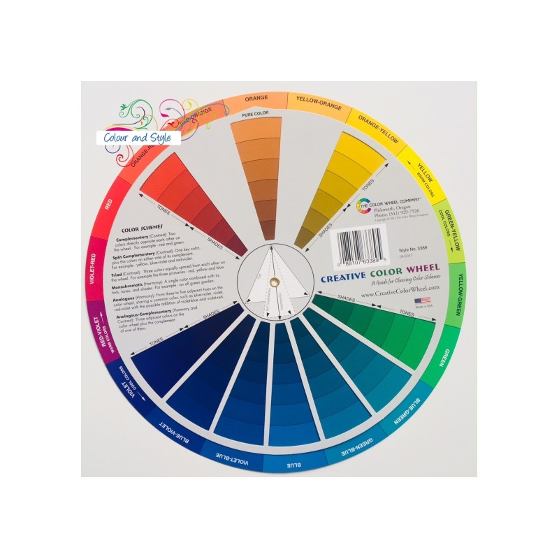 1. KOŁO KOLORÓW: z jednej strony przedstawia zasady tworzenia kolorów, z drugiej - odcienie poszczególnych kolorów oraz zasady łączenia kolorów.