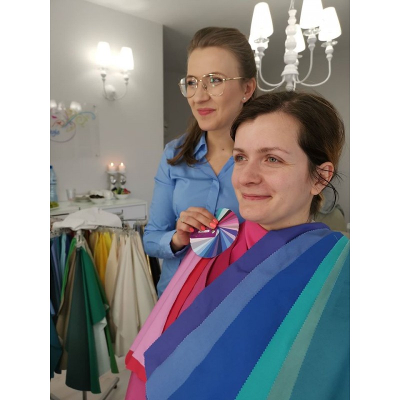 - praca z akcesoriami do analizy kolorystycznej (chustami, ramami, karnetami i paletami kolorystycznymi);