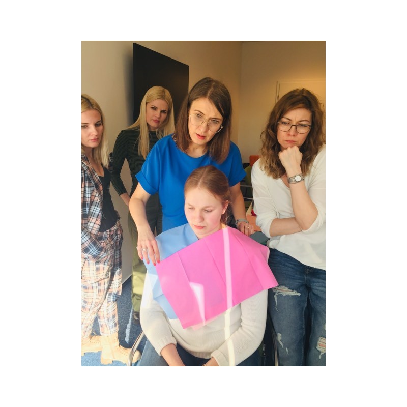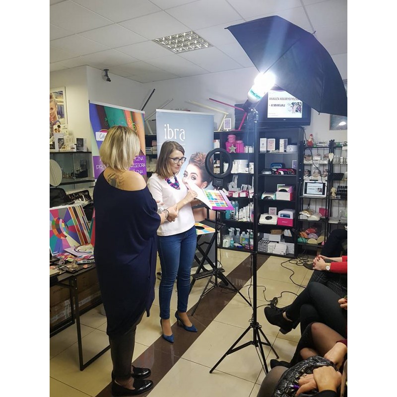 - praca z akcesoriami do analizy kolorystycznej (chustami, ramami, karnetami i paletami kolorystycznymi);