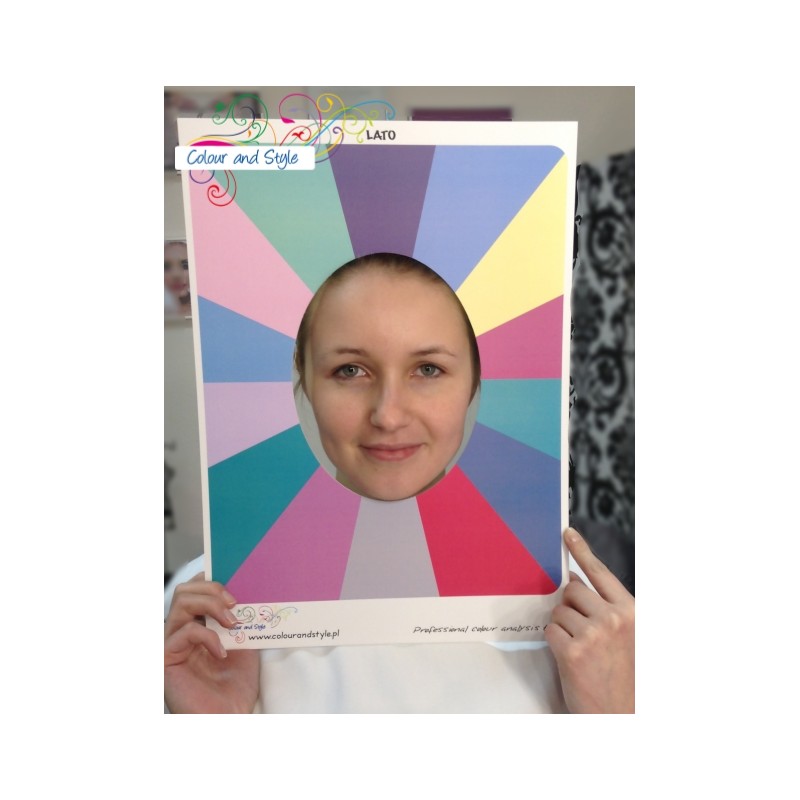 - z jednej strony jest pokazane 14 kolorów charakterystycznych dla danego typu urody, czyli odcienie niebieskiego, czerwieni, zieleni, różu / pomarańczu, itp.